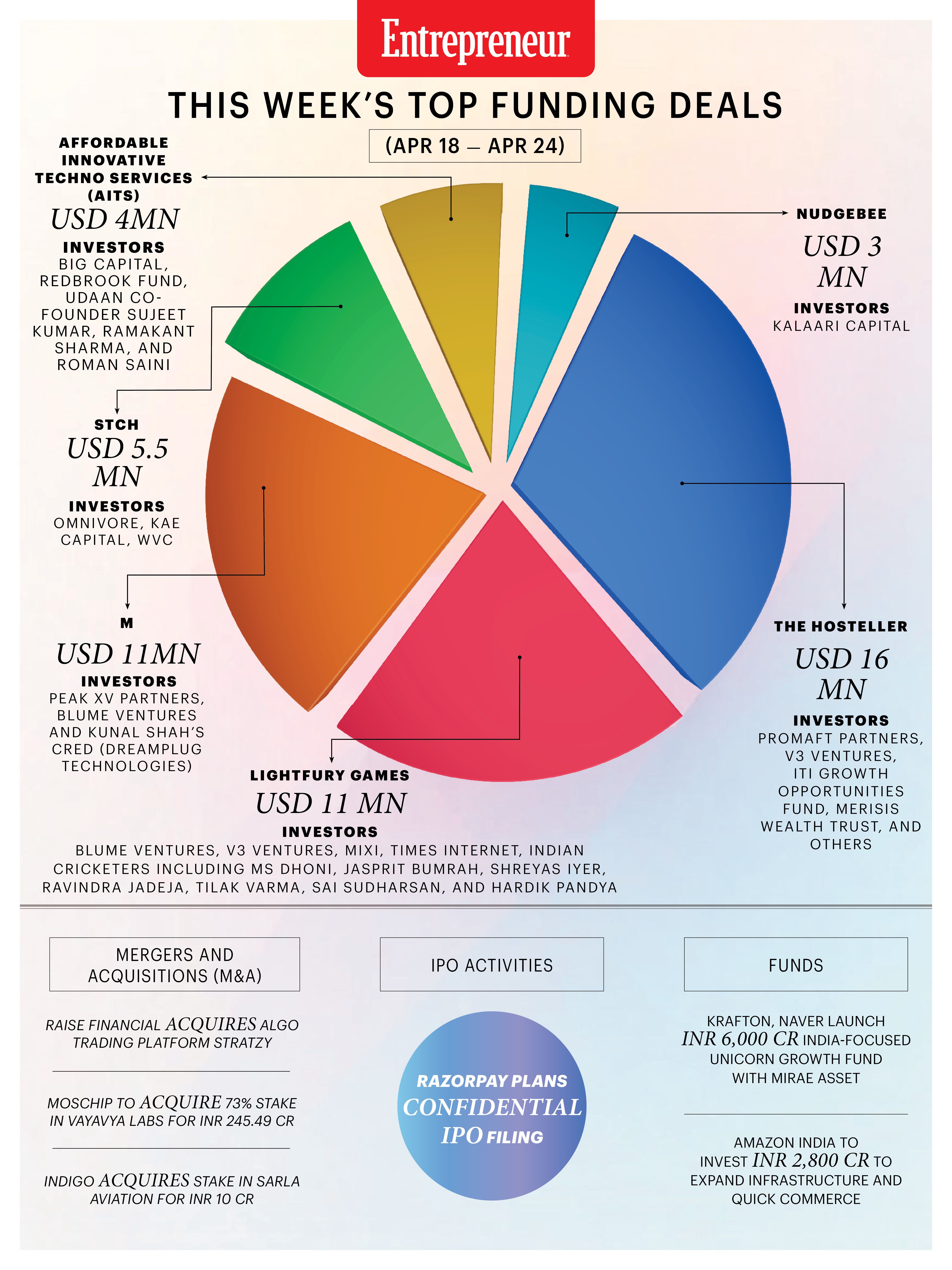 The Hosteller, LightFury Games, M, STCH, AITS, and NudgeBee lead this week’s funding deals.