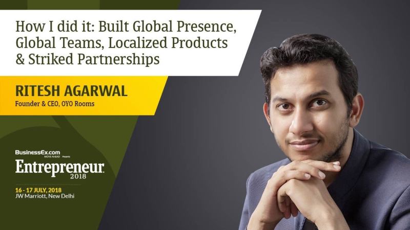Hear Ritesh Agarwal, founder Oyo Rooms, talk about it at the Entrepreneur 2018 Show on July 16-17 at JW Marriott, New Delhi