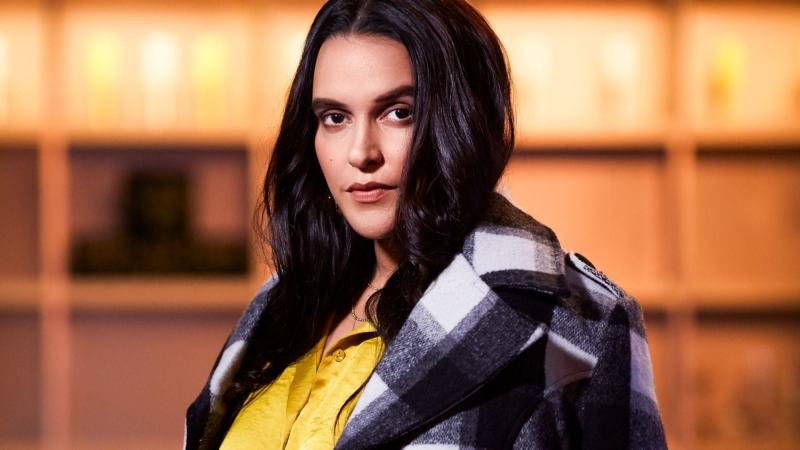 The cameras are set, the room is lit and the hustle-bustle of the crew continues. Enter actress Neha Dhupia in a black-white plaid checked coat, denim, and minimal gold accessories all set for the first shot. “Roll Sound Camera Action!” What follows next is the shutter, click of the camera and tons of interesting questions.
