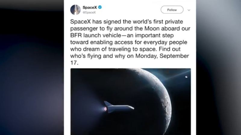 4. Elon Musk gets his first passenger for space travel. His company SpaceX has signed up its first passenger for a flight around the moon.