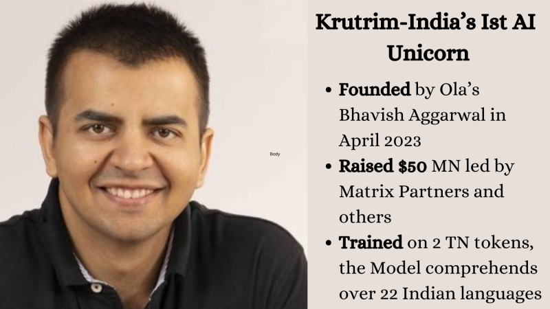 Bhavish Aggarwal’s AI startup Krutrimt has become India’s first AI unicorn after successfully closing its first funding round with a remarkable $50 million investment led by key investors, including Matrix Partners India.